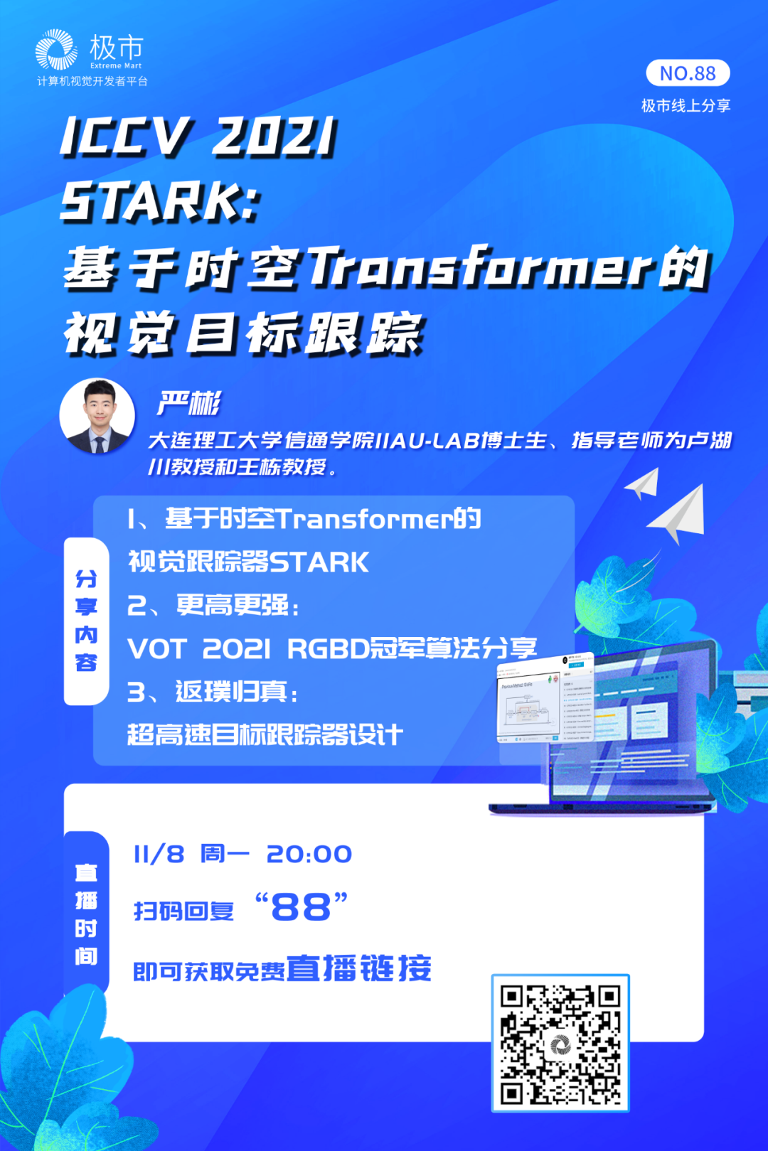 关注“极市平台”公众号,回复“88”或“严彬”可获取免费直播链接。