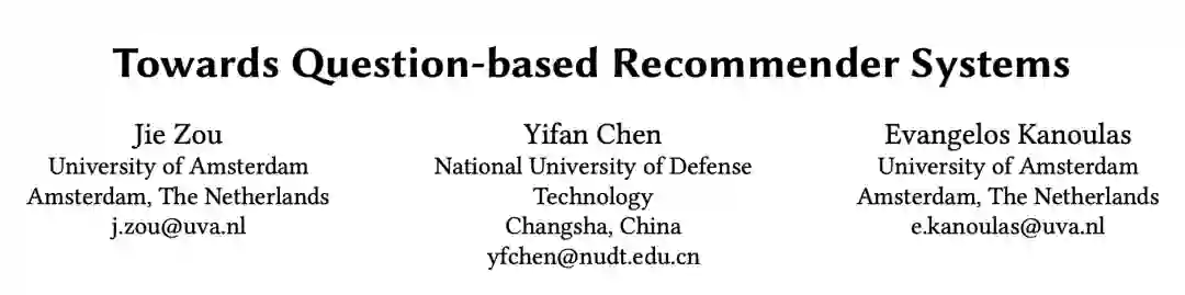 本文是阿姆斯特丹大学和国防科技大学发表于 SIGIR 2020 的工作。对话和提问式的推荐系统已经成为近些年的研究热点。本文提出了一种基于提问式的推荐算法,Qrec 能够交替地自动选择问题和构建答案。