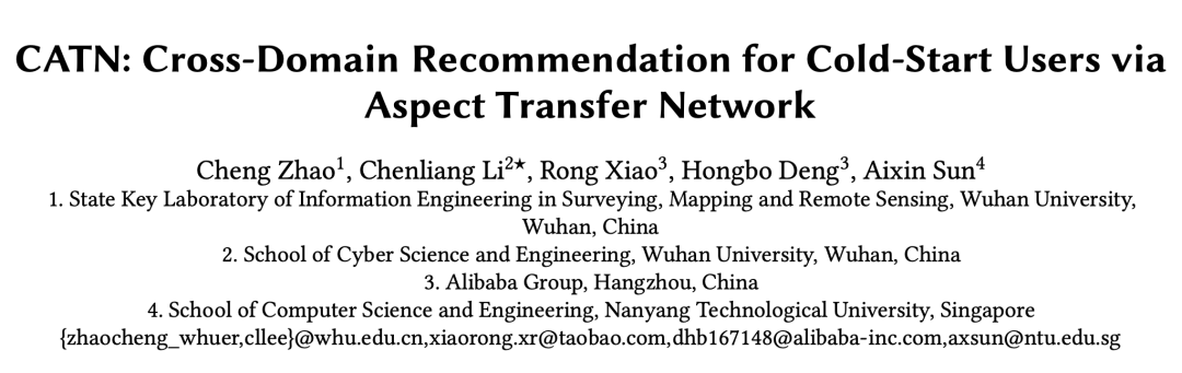 本文对用户和商品在不同场景下的特点进行了建模并提出一种名为 CATN 的模型。CATN 通过注意力机制学习不同领域之间的协同性。同时,作者还引入了评论信息来进一步强化用户的表示。最后,在评分预测实验上,作者提出的 CATN 可以大幅度超越 SOTA 的算法。