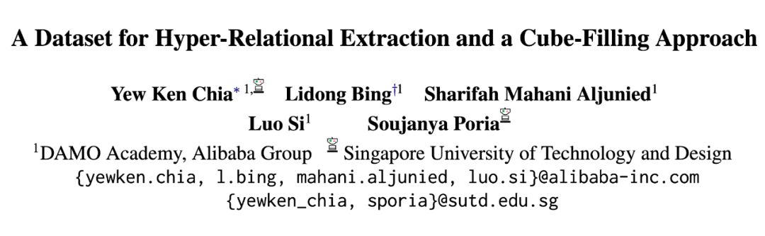 本小节工作来自 EMNLP 2022 主会论文:A Dataset for Hyper-Relational Extraction and a Cube-Filling Approach