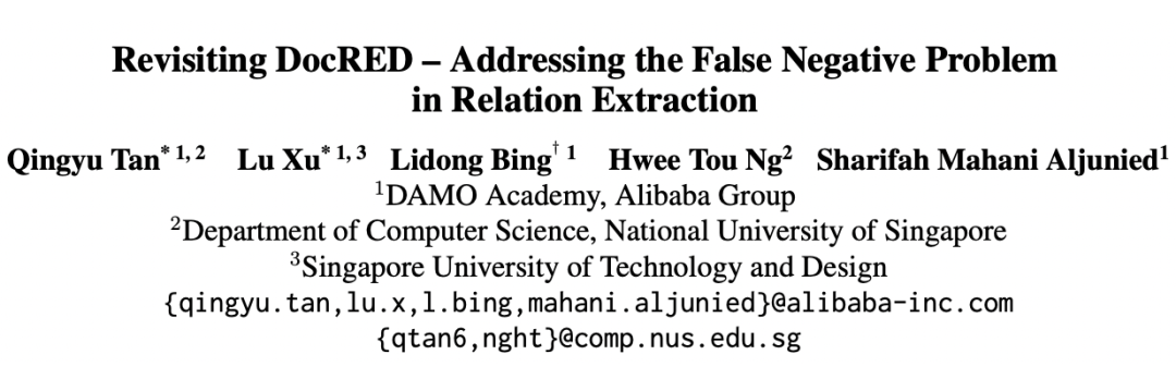 我们发现了文档级关系抽取的基准数据集 DocRED 中的假负类问题,该问题为正确评估关系抽取任务带来了相当大的挑战。为了解决这一问题,我们将 DocRED 数据集进行了高质量的重新标注,得到了质量更高的 Re-DocRED 数据集。同时,我们将 Re-DocRED 数据集在第一时间进行了开源
