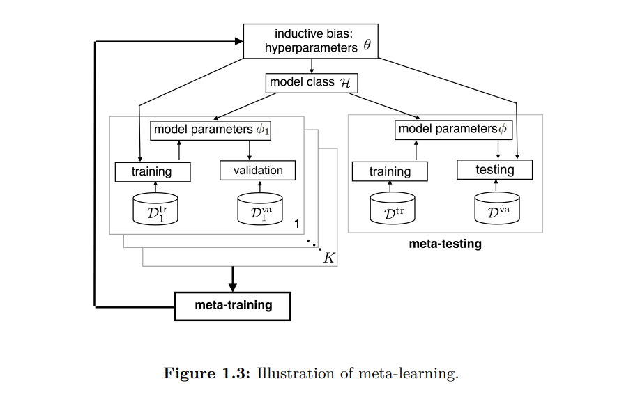 元学习:在元学习中,我们可以访问许多任务的数据,但我们对训练机器学习模型不感兴趣,就像在多任务学习中那样。相反,我们希望使用来自多个任务的数据来设计一个训练程序,而不是产生一个单一的机器学习模型。具体来说,目标是确保元学习训练过程能够有效优化机器学习模型,用于任何先验未知的学习任务。因此,在元学习设置中,人们不知道目标任务将是什么,尽管人们期望它与那些有数据可获得的目标任务相似。通过优化学习过程,元学习实现了一种学习的形式。在图像分类示例中,元学习将生成一个过程,能够通过使用来自其他类似分类任务池的数据,为任何新的分类任务优化分类器。