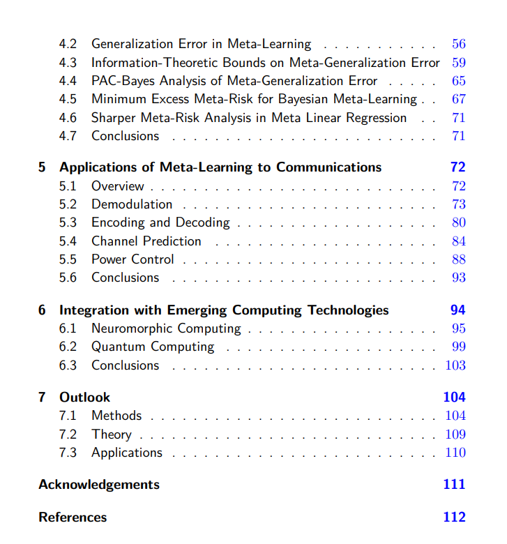 第五节。元学习在通信中的应用:本节介绍了元学习在设计通信系统的工程问题中的应用的几个例子。回顾的应用例子包括解调和功率控制。