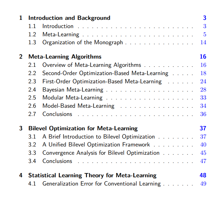 第七节。展望:最后一部分通过对开放问题的简要回顾和进一步的阅读和研究方向,对元学习领域进行了展望。