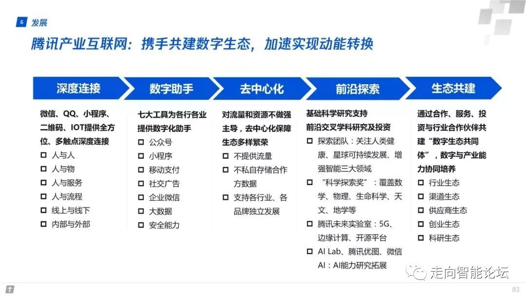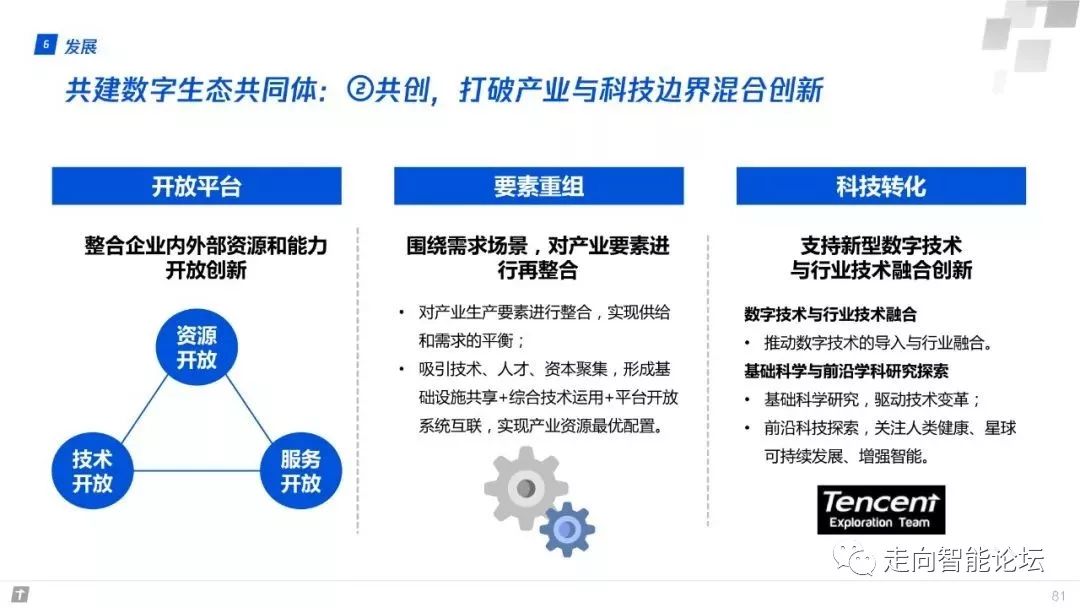 近日,在2019腾讯全球数字生态大会新闻发布会上,腾讯云联合腾讯研究院,共同发布了行业重磅报告:《产业互联网——构建智能+时代数字生态新图景》。报告首次阐述了产业互联网的战略框架和实践方法论。报告指出,产业互联网的实现,需要跨界共建数字生态共同体,形成新价值网络,需要传统行业发挥主导作用,利用互联网工具,构建适合自身特点的新型数字生态网络,获得新动能、实现新价值。本文来自:腾讯研究院,版权归原机构所有,由《走向智能论坛》微信公号推荐阅读。