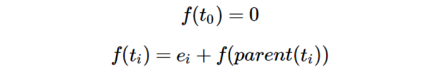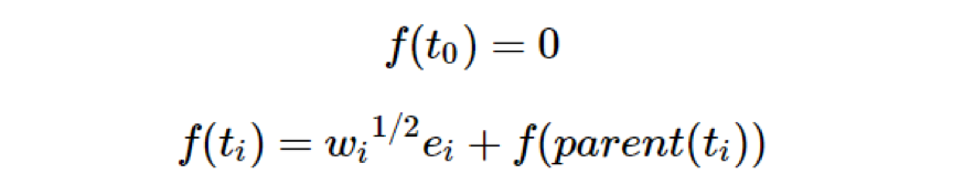 和前面一样,令树 T 的节点为 t_0,...,t_(n−1),其中 t_0 为根节点。令 {e_1,...,e_(n−1)} 为 R^(n-1) 的正交单位基向量。现在令 w_i=d(t_i,parent(t_i))。经过归纳,定义嵌入 f 为:
