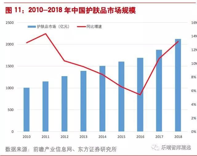 根据欧睿咨询数据显示,2018年国内化妆品市场中护肤品增速为13.2%,彩妆市场增速从2013年的13%进一步提升至2018年的24.3%,增速呈现进一步加快的趋势。