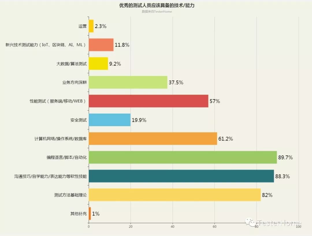 优秀的测试人员具备的能力,这个数据可以帮助大家知道,想要得到行业认可,应该从哪些方面入手学习,才更容易在同行中具备优势。
