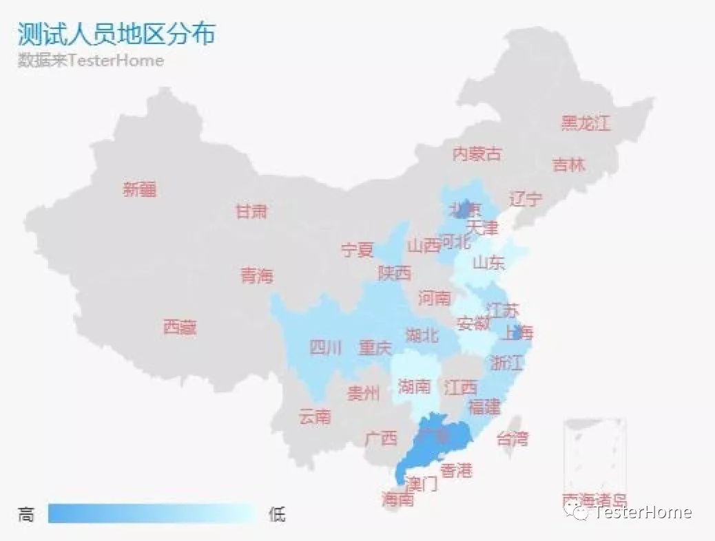 不出所料,一线城市占据了绝对的主导地位,测试行业作为 IT 行业的一部分,间接体现 行业公司的发展现状。分布在一线城市比例接近七成,这说明就业机会还是主要聚集在一线城市,二线城市虽然有个别城市发展迅速,但是整体来说,一线城市的公司数量和机会依然是大家青睐的地方,如果每年都可以完成这样的调研的话,或许可以看出一线城市和二线城市人才流动的趋势,帮助大家做一些决策。