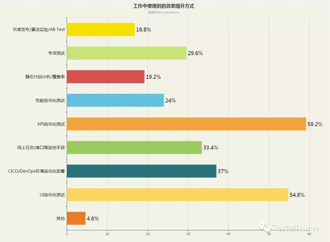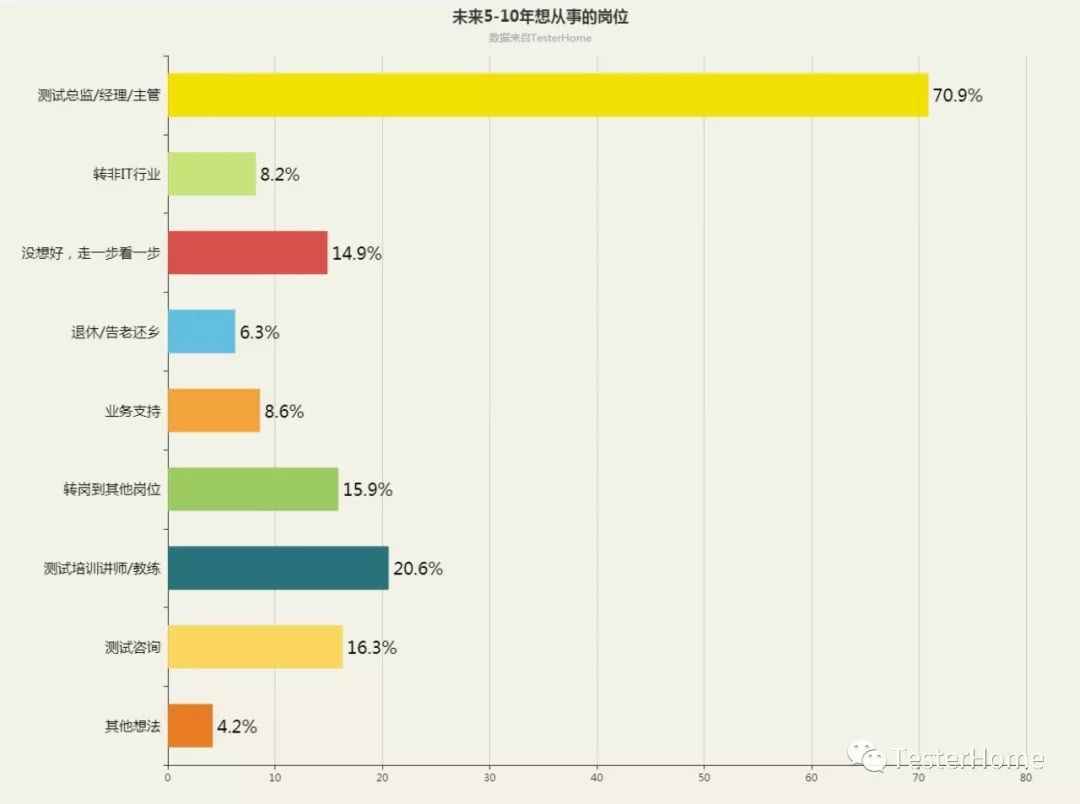大家的目标还是很明确的。虽然测试经理和主管的人群占了本次调研 18.4%的比例,但是总监及以上的群体只有不到 1%,未来的路充满了挑战,请大家努力加油。