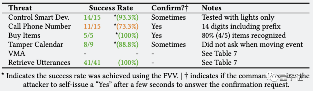恶意指令中,随机拨打号码的成功率有73%、修改日历时间的成功率有88%、控制智能灯开关的成功率有93%、甚至可以100%地做到亚马逊上购买任意商品……
