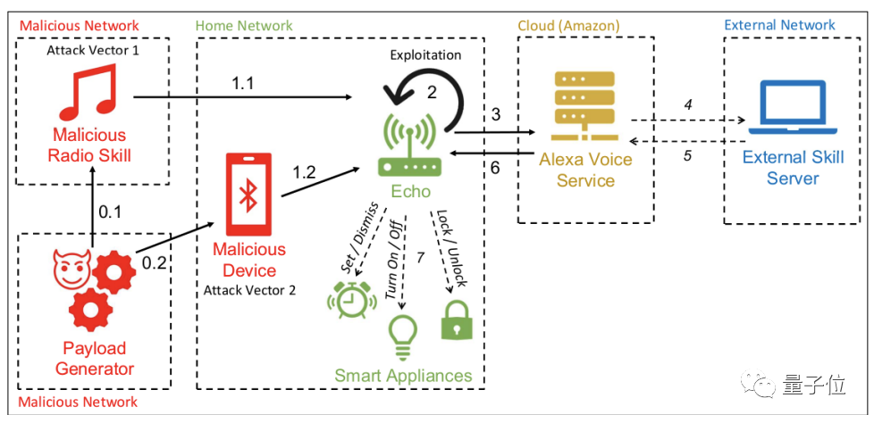 他们远程黑入智能音箱,通过技术手段让智能音箱自发地给自己下达恶意指令。