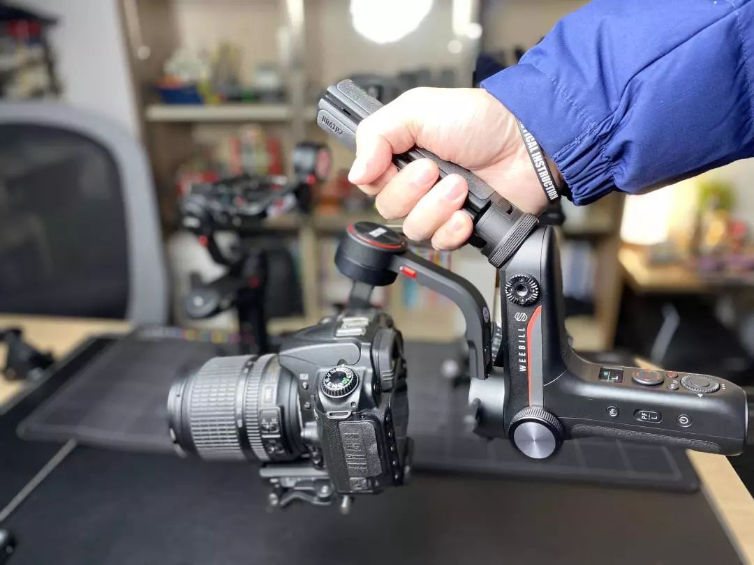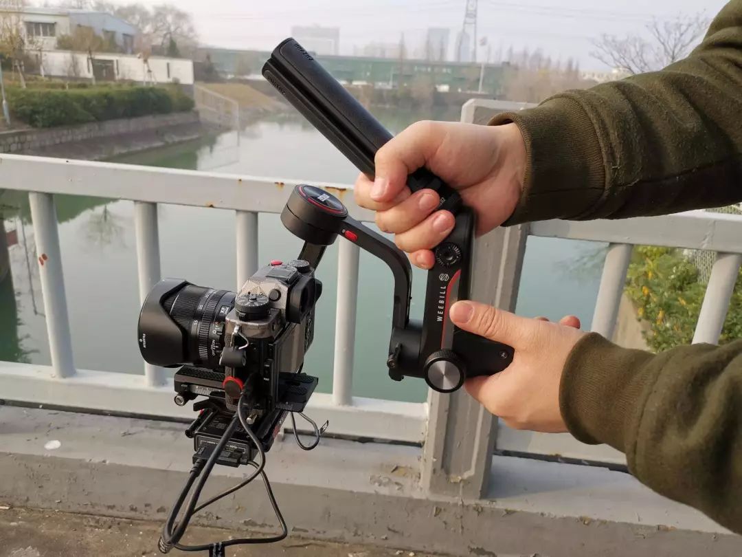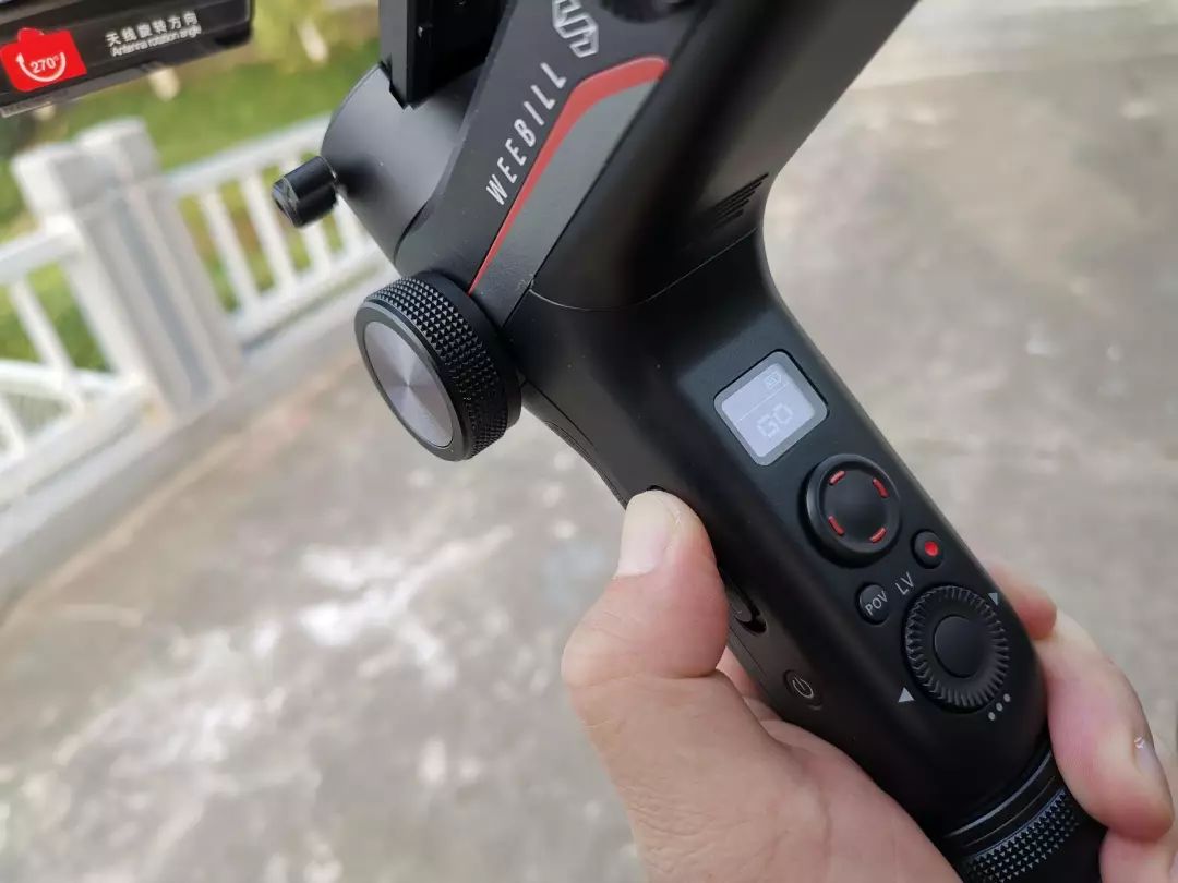 比如原先在 Weebill-Lab 上使用相机的翻转屏来取景的时候,因为轴距的不够,屏幕会被稳定器的电机给卡住,在 Weebill-S 上则不存在这个问题。