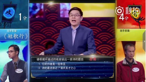 然而,彭敏却屡屡犯错,在面对给出的“作者是一位帝王”,“诗的最后表达了渴求英才之心”的提示,彭敏居然给出了《短歌行》的答案。评审老师康震直说,“昏了头了吗?曹操是帝王吗?”
