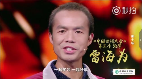 接下来,又是两轮PK赛,凭借着1000多首诗词的积累,雷海为再次攻擂成功,在最后一刻成功逆袭,获得了总决赛的门票。
