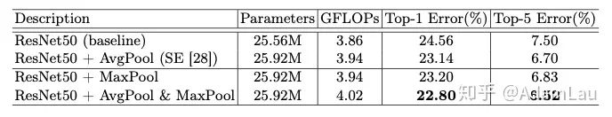 用maxpooling与avgpooling一起比SENet(仅用avgpooling)效果更好。