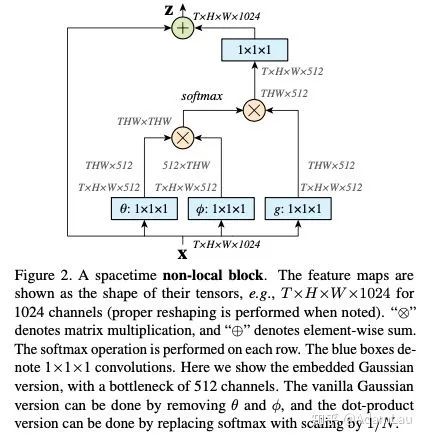 提出的non-local operations通过计算任意两个位置之间的交互直接捕捉远程依赖,而不用局限于相邻点,其相当于构造了一个和特征图谱尺寸一样大的卷积核, 从而可以维持更多信息。