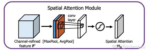 这一次是在轴的方向上对不同特征图上相同位置的像素值进行全局的MaxPooling和AvgPooling操作,分别得到两个spatial attention map并将其concatenate,shape为[2, H, W]。