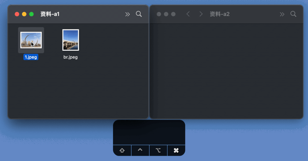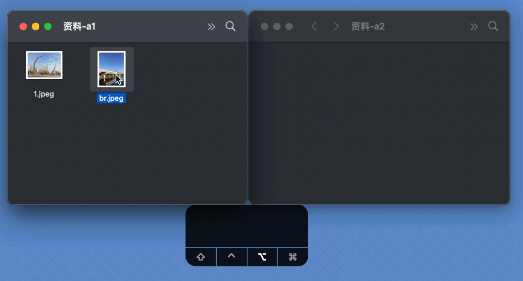 简单来说就是,打开两个访达的窗口,按住 Option,用鼠标左键把一个文件从当前文件夹中拖动到目的文件夹中即可;如果鼠标只是在当前文件夹中进行的拖动,那么结果就是在原地快速地制作了一个选中文件的副本。