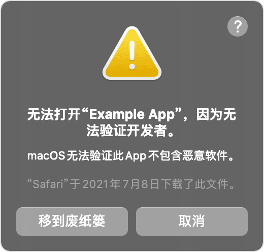 Option 还可以在打开程序时绕过 macOS 上的「门禁」系统,如果你在打开程序时出现了类似下面的弹窗,你可以在应用程序上进行右键,按住 Option 再选择打开,这样就可以正常启动程序了。需要注意的是你要确定要安装的 App 来自于可信来源,并且未遭篡改,否则可能会导致 macOS 和个人数据的安全问题。