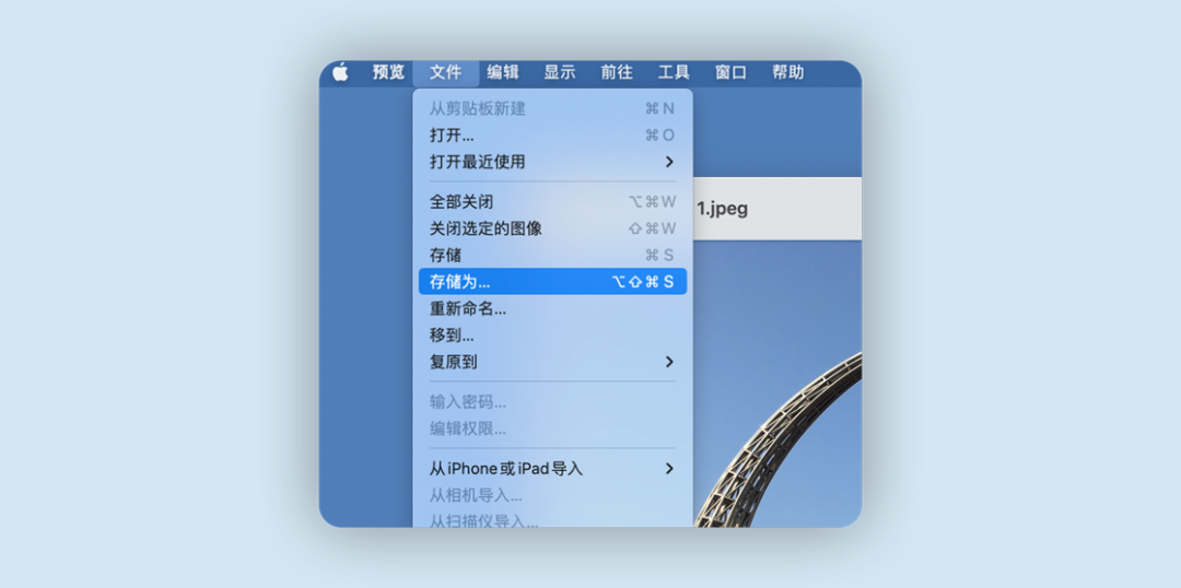 使用预览打开文件,按住 Option,然后点击文件 > 存储为就可以将文件存储为其他格式。