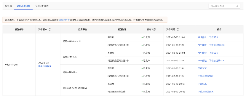 事实上,在EasyEdge,当你发布模型的时候,你通常能见到这样的网页: