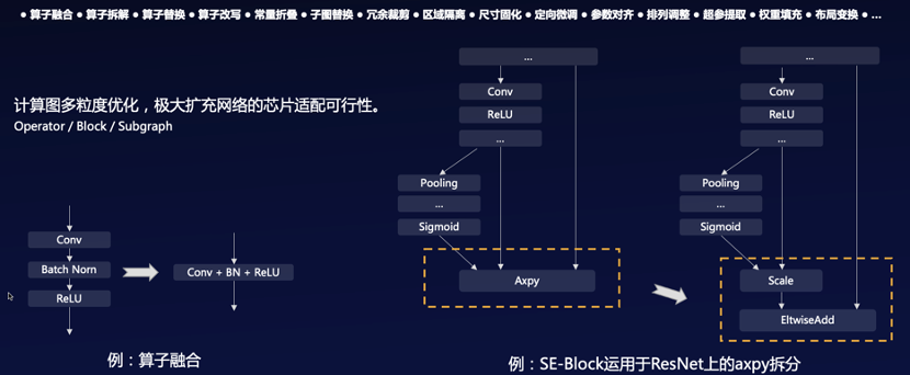 为了适配诸多AI芯片,EasyEdge针对不同芯片做了大量适配加速工作。因为在训练阶段,更多地关注模型效果及调优的灵活性。当训练完成后,模型就固化下来了。然而在端上部署时,关注点会变为模型的推理,在推理环节中的重点是推理性能。因此各家AI芯片厂商为了实现更高性能的推理能力,都在努力提高芯片的并行处理能力,或者通过GPU这样的超多线程并行处理,或者通过ASIC芯片这样极大增强芯片的单指令向量乃至矩阵处理能力。但不管怎样,线程化或者向量化带来算力巨大提升的同时,必然导致灵活性的下降。这也是为什么端侧AI芯片大都具有自己的模型格式和计算库。但同时也就带来了部署上面大量的适配和模型转换工作。为此,EasyEdge内置了强大的模型互转工具,实现各个框架模型到统一IR的转换,再将统一的IR适配到各个端上。当模型部署到端上时,遇到有些OP不支持的情况时,EasyEdge提供了大量的OP优化和替换操作。同时,EasyEdge还会利用芯片的自定义OP功能或者底层的编程语言进行自定义OP的编写,以保证模型端到端地运行到AI芯片上。