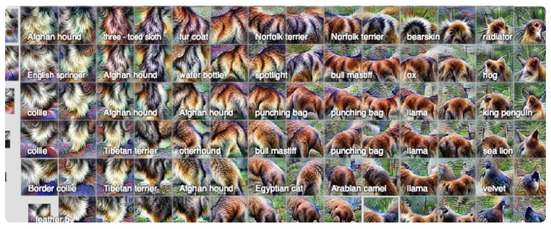 在深入研究Activation Atalas之前,先简要回顾一下如何使用特征可视化使激活向量变得有意义,也就是如何“透过网络的眼睛看”事物。 这种技术将成为Activation Atalas的基础。