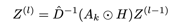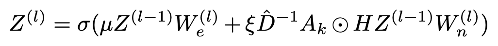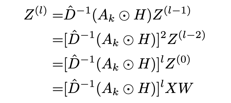 我们的方法的核心是自适应地学习同质性和异质性的传播过程。因此,我们将可学习的同质性度矩阵纳入图卷积框架中,以自动改变传播权值根据同质性程度。最后给出了 HOG-GCN 方法在迭代 l 中的特征传播过程: