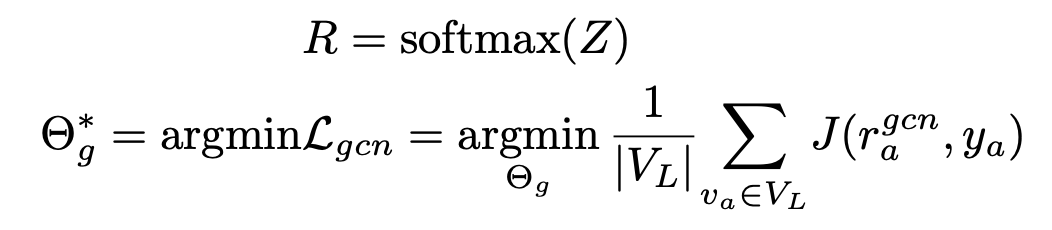 在第二个分量中,我们将同质度矩阵纳入图卷积框架。表示图卷积运算的所有参数均为 ,然后根据 HOG-GCN 的最终输出 Z 得到最优的 :