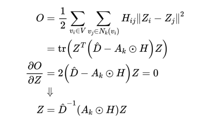 在本节中,我们证明了我们的新方法可以根据 k 阶邻域内节点之间的同源性来约束节点之间表示的相似性。将 HOG-GCN 的输出表示为 Z,则其传播过程可以视为最小化下面的目标函数。