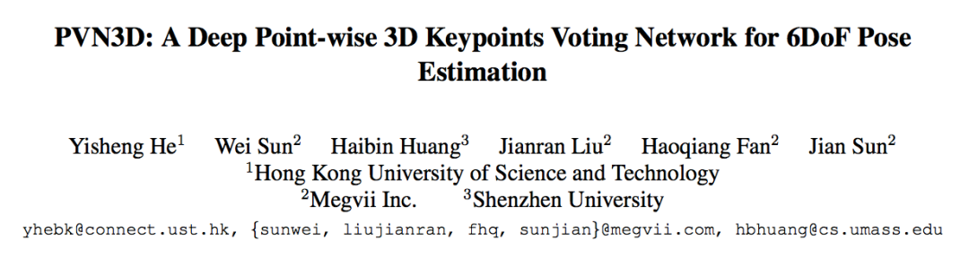 导读:本文提出一种新颖的基于单张 RGBD 图像的物体6D位姿估计算法;不同于现有的直接回归位姿参数的方法,它开创性地提出用深度神经网络检测 3D 关键点来解决单目 6D 位姿估计这个问题。论文代码已开源。