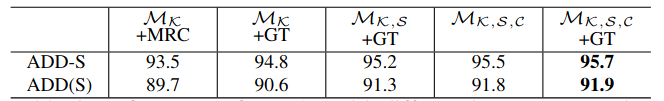 表 3 给出了在 LineMOD 数据集上的量化结果,本文模型同样取得当前最佳性能。
