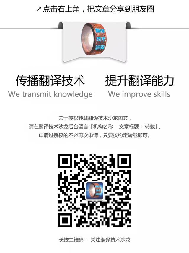 加入沙龙总群请在“翻译技术沙龙”(trantechsalon)微信公众号后台点击「沙龙」->「入群」获取入群方式。