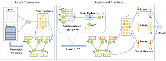 为了解决上述问题,中科院自动化所智能感知与计算研究中心团队提出一种基于文本图神经网络架构的匹配方法,用图(graph)结构表示文本,能够同时建模两个文本之间的交互以及每个文本内部的上下文关联,可以有效缓解现有方法中长文本难匹配的问题,如图1所示。
