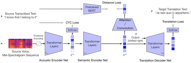 随着跨语言交流的日益频繁,语音翻译技术受到了越来越多的关注,其应用场景包括影视出海、跨国旅游、国际贸易等。传统的级联式语音翻译系统通常由独立的语音识别模型(ASR)和文本翻译模型(MT)组成,存在着模型存储大、时延高、计算资源消耗多、错误累积等问题。而端到端语音翻译模型(ST)直接输入源语言的音频,输出目标语言的文本,将语音识别技术和文本翻译技术融合到一个模型中,具备低延迟、误差传播小、易部署等潜力。但由于目前音频及对应的目标语言文本的平行数据还比较匮乏,因此端到端语音翻译是一项非常具有挑战性的任务。