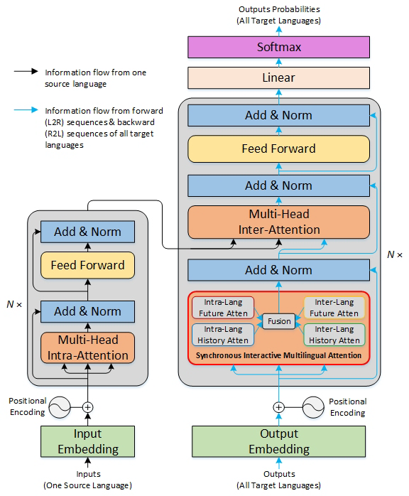 图. 基于同步交互式解码的多语言神经机器翻译方法