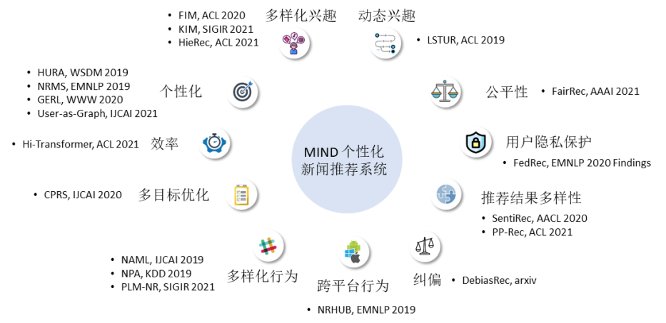 研究院在个性化新闻推荐领域也进行了一系列研究,包括:提高新闻推荐系统的个性化、效率、公平性、多样性和隐私保护,建模用户的跨平台和多样化行为,以及用户的多样化和动态化兴趣等。