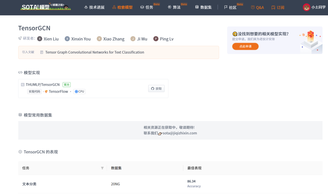 当前 SOTA!平台收录 TextGCN 共 1 个模型实现资源。