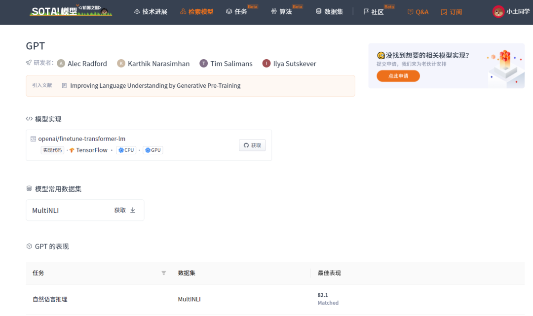 当前 SOTA!平台收录 GPT 共 1 个模型实现资源。