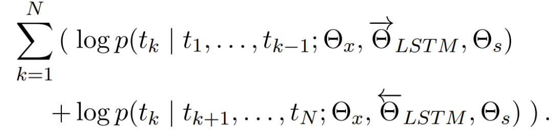首先介绍双向语言模型biLM,这是ELMo的基础。给定N个tokens的序列,一个前向语言模型通过对t_o的概率进行建模来计算t_k的概率: