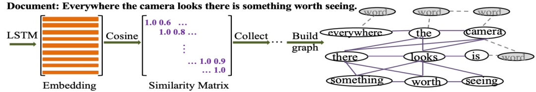图12 利用LSTM编码的语义信息建立单词之间的关系。以一份文本为例,基于语义的图是通过收集所有文本语料库中的所有语义关系词对来构建的