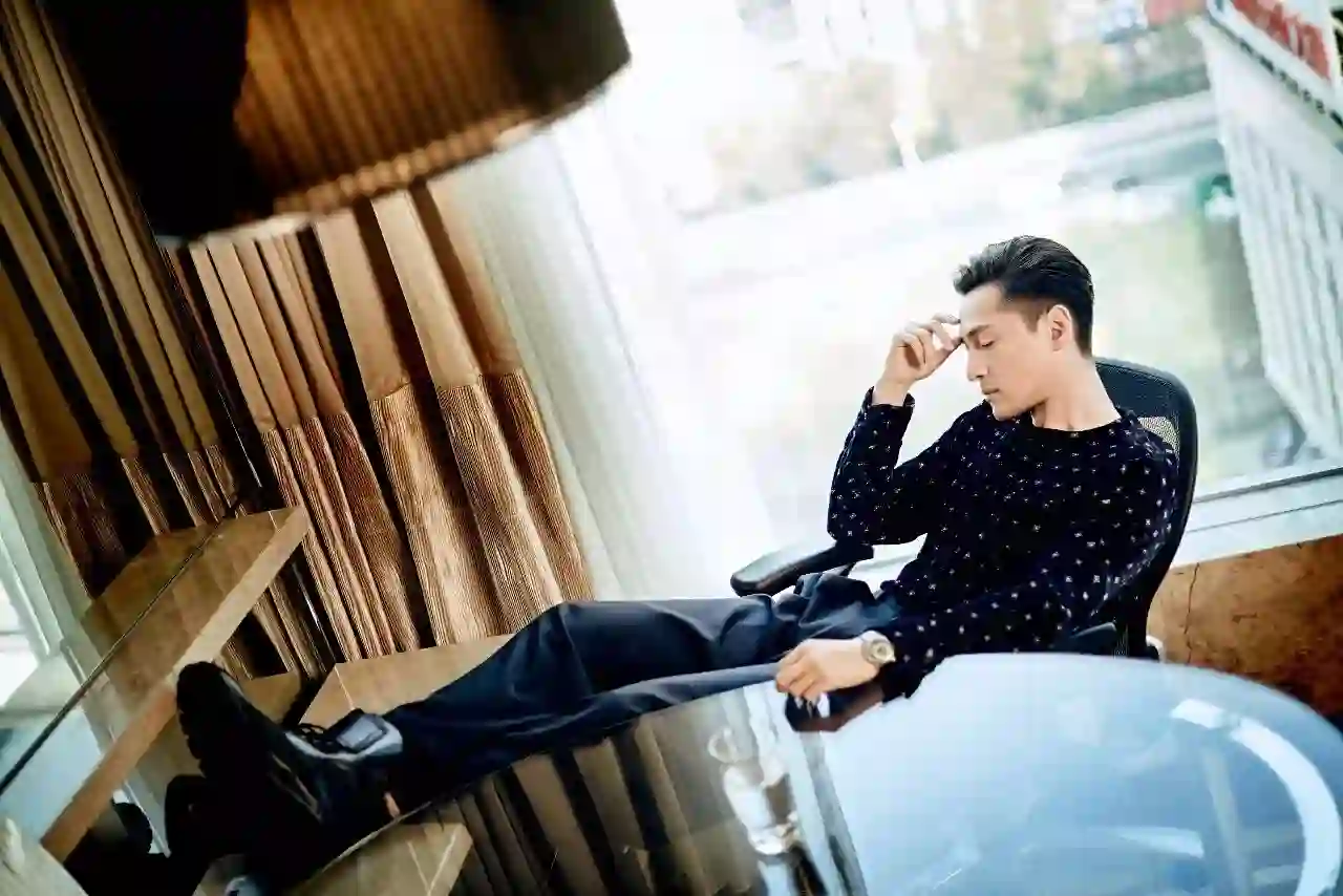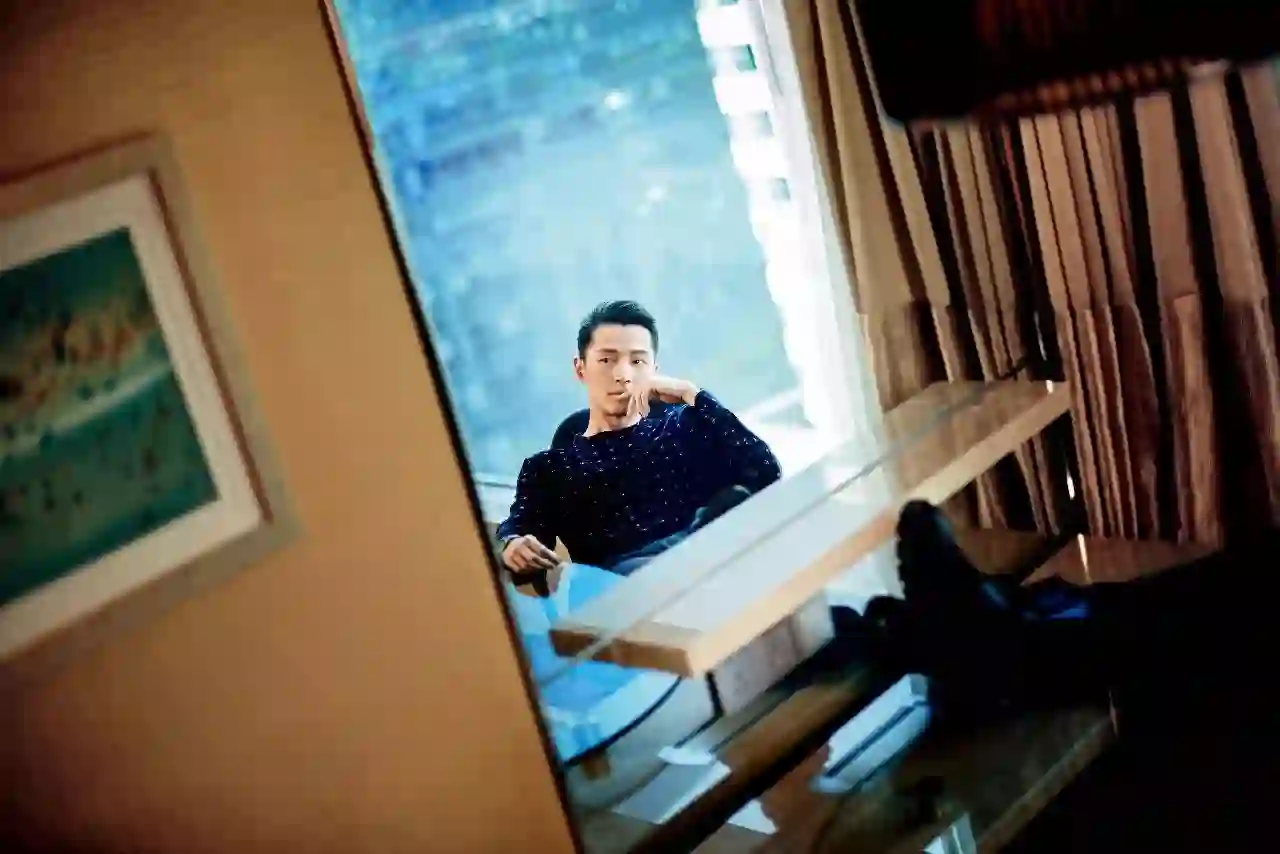 下午5点半,胡歌背后的窗外已经黑下来。由于光线不足,他的脸在顶灯的垂直照射下,开始显得有些松弛和疲惫。他用手指着脸告诉我们:「我的右脸是过去,左脸是现在。」