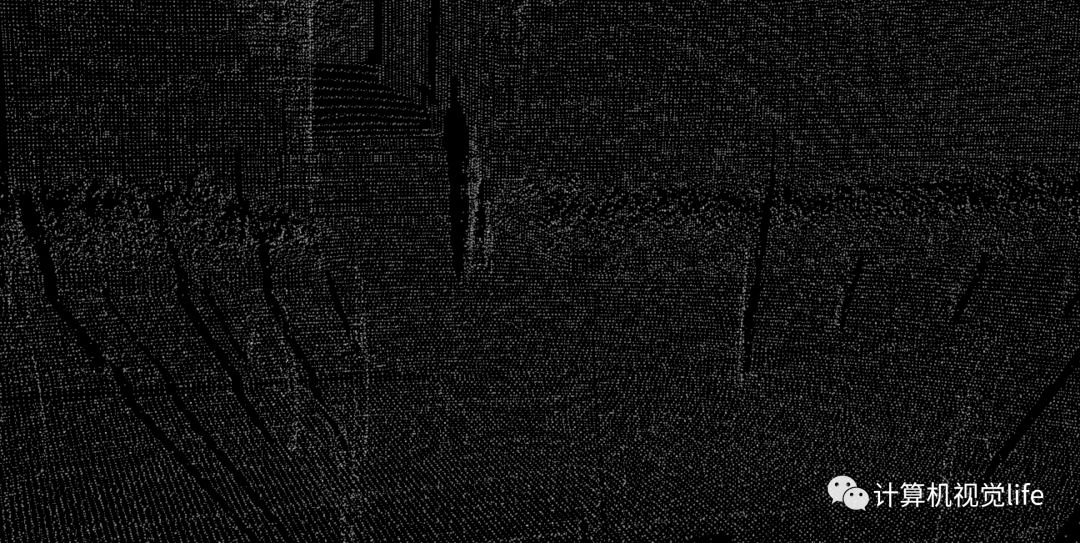 第一个缺点就是点云并不是稠密的表达,一般比较稀疏,你放大了看,会看到一个个孤立的点。它的周围是黑的,也就是没有信息。所以在空间很多位置其实没有点云,这部分的信息是缺失的。
