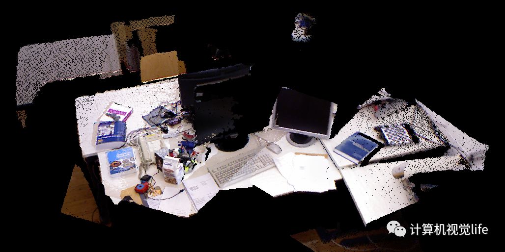 第二个优点我觉得就是,点云本身和视角无关,也就是你可以任意旋转,可以从不同角度和方向观察一个点云,而且不同的点云只要在同一个坐标系下就可以直接融合,还是很方便的。
