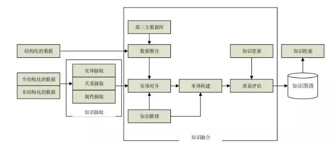 构建知识图谱是一个迭代更新的过程,根据知识获取的逻辑,每一轮迭代包含三个阶段:
