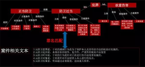 而通过对海量判决书的挖掘,可以建立犯罪行为之间的关联,比如说,防卫过当和故意伤害之间有一个关联,即误判为的关系。