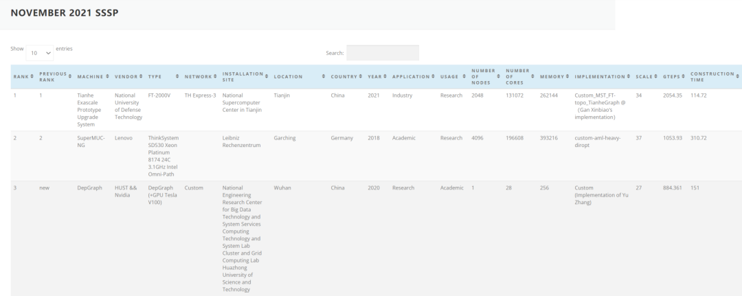 Graph 500和Green Graph 500是国际上评价超级计算机图计算性能和性能功耗比的最权威榜单,主要针对当前热门的图计算实施评测,可充分体现超级计算机在支持图计算时的计算效率、访存性能和通信性能,直接反映超级计算机处理图数据的能力。