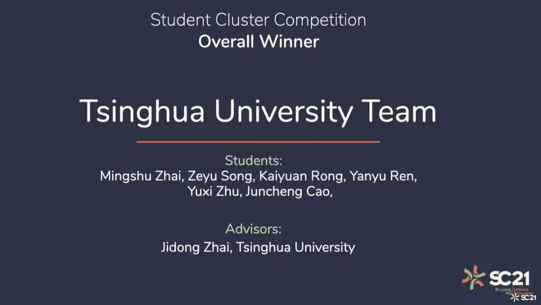清华大学团队夺得总冠军,实现SC竞赛4连冠,这也是该团队自2012年成立以来,在三大竞赛(ISC、ASC、SC)中取得的第15个总冠军。