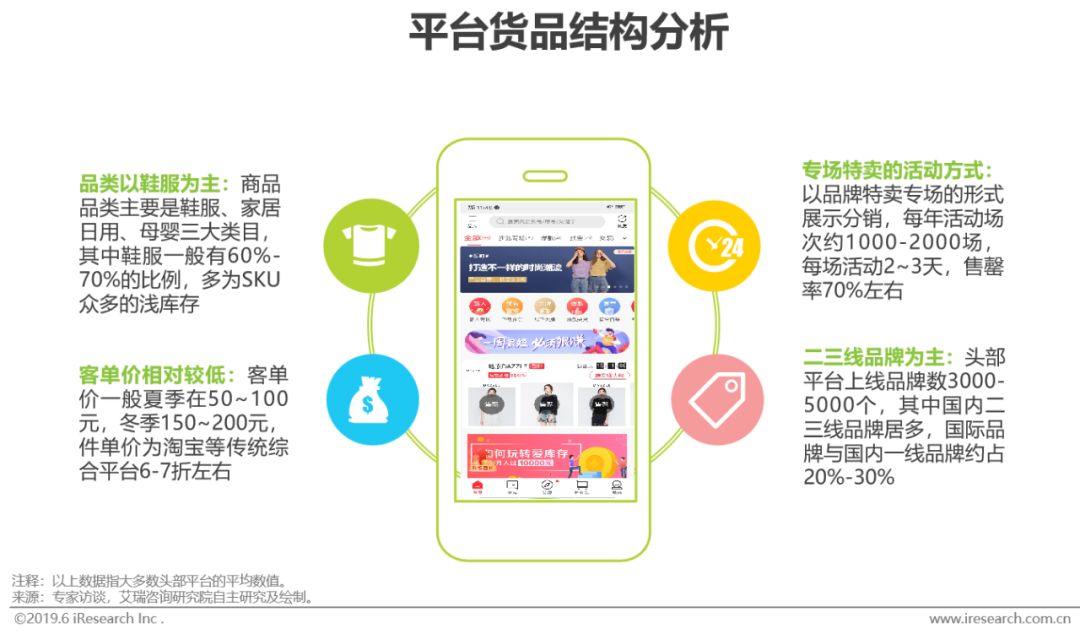 鞋服类居多,低价商品通过特卖专场触达三线及以下城市